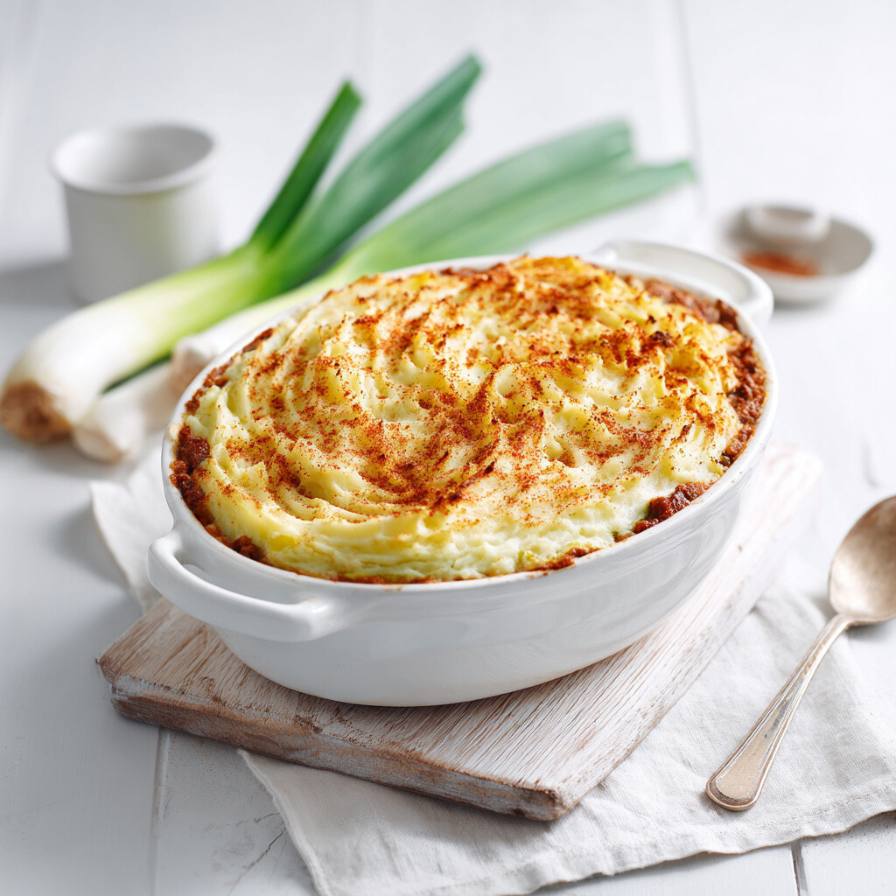 Soms wil je gewoon een ovenschotel die nét even anders smaakt dan de klassieke variant. Met een vleugje cajun kruiden geef je deze prei-gehaktschotel direct meer diepte en warmte. De zachte prei, romige aardappelpuree en kruidige tonen van paprika, tijm en een subtiele pit zorgen samen voor een verrassend volle smaak. Comfort food, maar dan met karakter.